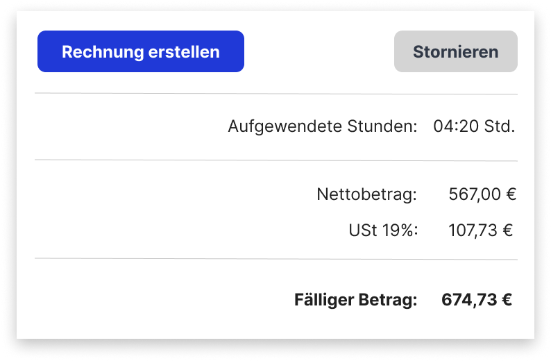 Mit magile lernen, wie geleistete Stunden mit nur 2 Klicks in eine Rechnung umgewandelt und abgerechnet werden können.