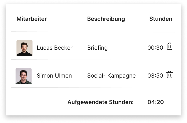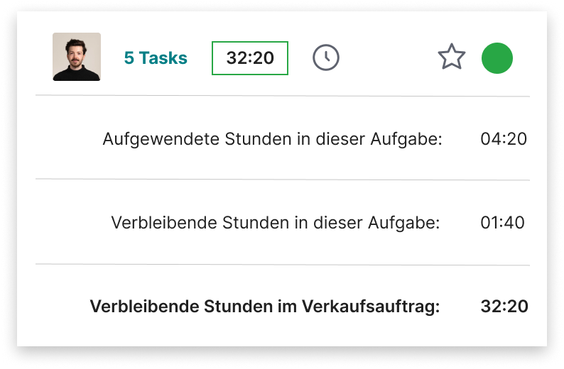 Arbeitsstunden direkt in die Aufgaben eintragen.
